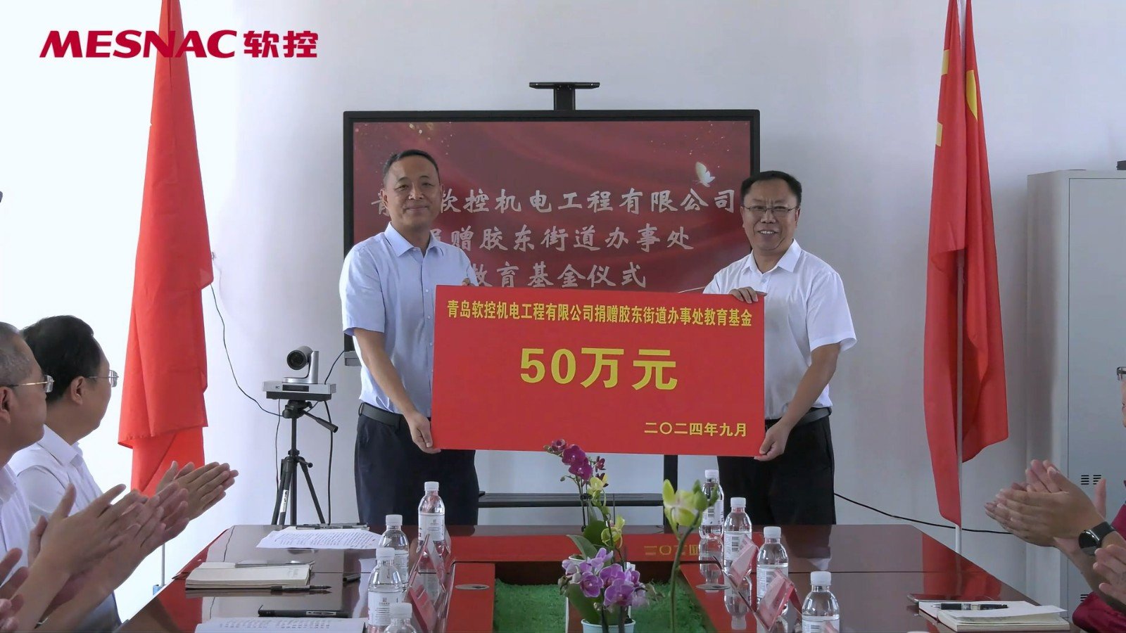 9月9日,在第 40 個教師節(jié)來臨之際,青島軟控機(jī)電工程有限公司向膠東街道捐贈教育基金50萬元。膠東街道黨工委書記朱本軍,膠東街道黨工委副書記、辦事處主任趙方毅,膠州市體育發(fā)展中心主任袁鵬,膠東街道人大工委主任史大勇,膠東街道黨工委委員、辦事處副主任宋剛,膠東街道人大工委副主任孫偉,膠東街道教育系統(tǒng)黨委書記史文江及教師代表出席,青島軟控機(jī)電工程有限公司總經(jīng)理武守濤、副總經(jīng)理俞一航及員工代表參加捐贈儀式。朱本軍、武守濤發(fā)表講話,袁鵬闡述了膠東教育未來的發(fā)展規(guī)劃,孫偉詳細(xì)介紹了近幾年膠東街道教育發(fā)展情況。