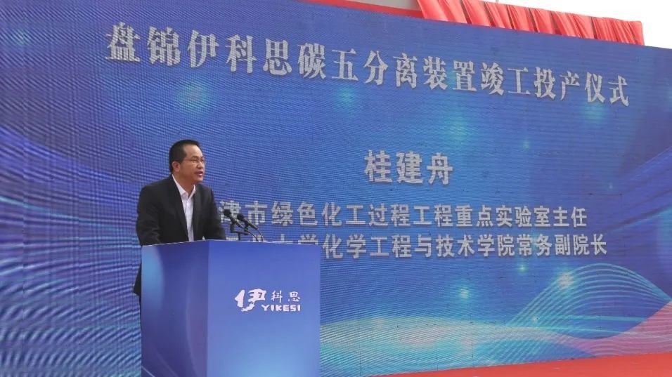 嘉賓代表天津市綠色化工過(guò)程工程重點(diǎn)實(shí)驗(yàn)室主任、天津工業(yè)大學(xué)化學(xué)工程與技術(shù)學(xué)院常務(wù)副院長(zhǎng)桂建舟發(fā)表致辭,他向盤錦伊科思表達(dá)了誠(chéng)摯的祝福與美好的祝愿,肯定了企業(yè)在化工新材料領(lǐng)域的積極探索與貢獻(xiàn)。