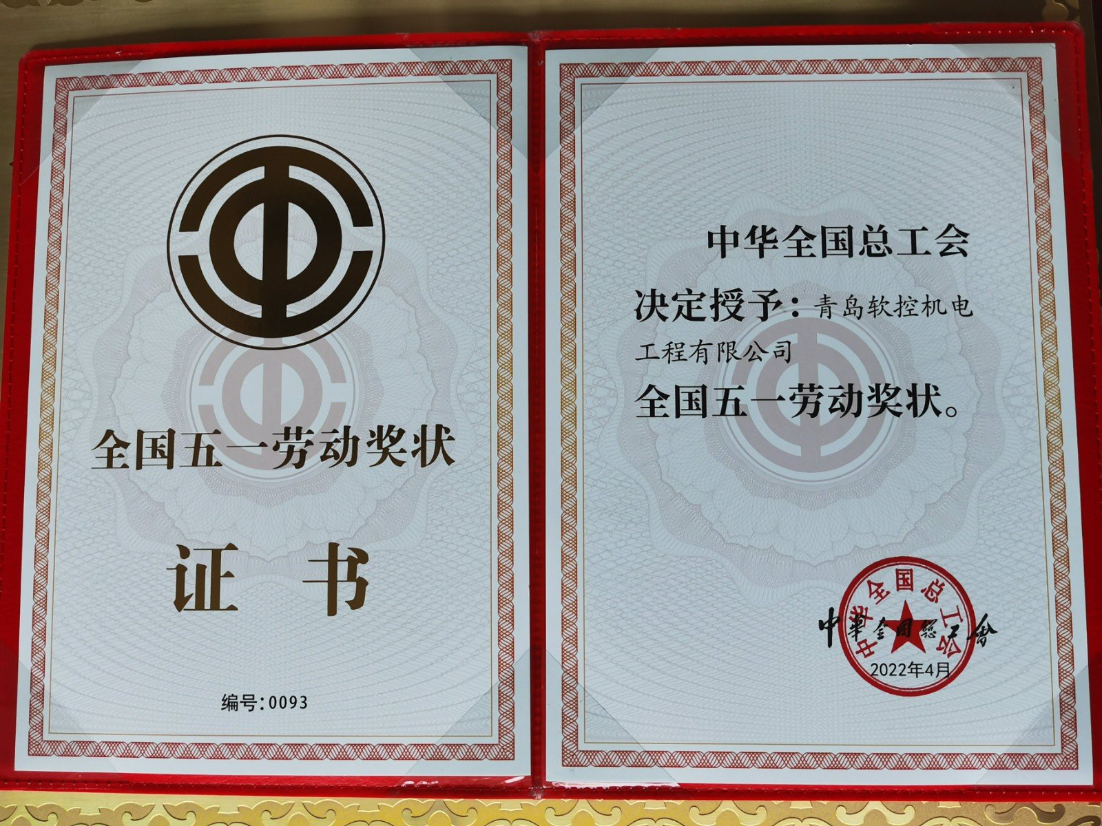 青島軟控機電工程有限公司榮獲“全國五一勞動獎狀”,是青島市僅有的兩家獲評企業(yè)之一,全國有200家?!叭珖逡粍趧营劆睢笔侵腥A全國總工會授予在中國特色社會主義建設中做出突出貢獻的企事業(yè)單位、機關團體的光榮稱號,是中國工人階級最高獎項之一。