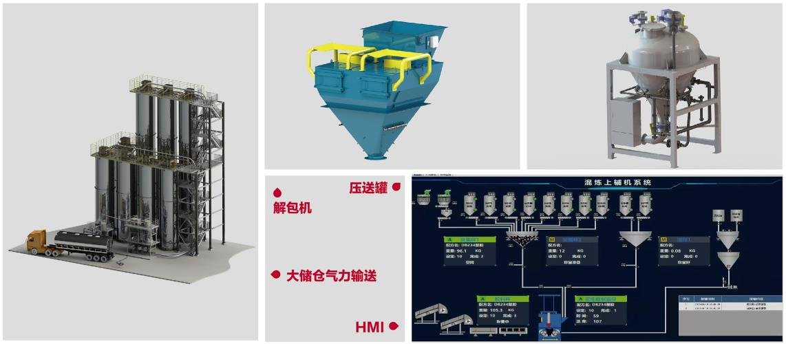 該系統(tǒng)是軟控自主研發(fā)的具有高科技含量的智能化自動輸送、配料、投料系統(tǒng)。系統(tǒng)運用了現(xiàn)代信息技術,深入開發(fā)利用系統(tǒng)資源,真正實現(xiàn)管控一體化。可為各種規(guī)格的密煉機配套上輔機系統(tǒng)或升級、改造與維護。