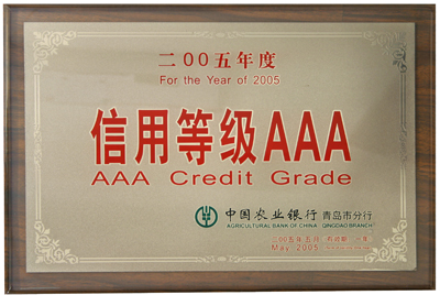 近日,我公司被中國農(nóng)業(yè)銀行青島市分行評為信用等級AAA企業(yè)。