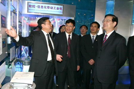 2008年5月8日,國家科技部黨組成員吳忠澤、高新司司長馮記春一行在山東省科技廳副廳長孫偉、青島市副市長王修林、科技局局長王安民、副局長蓋健等領(lǐng)導(dǎo)的陪同下來我公司視察工作。青島科技大學(xué)校長馬連湘、副校長劉光燁、公司董事長袁仲雪、副董事長張焱、副總經(jīng)理王金健陪同來賓到公司各園區(qū)進(jìn)行了參觀。
