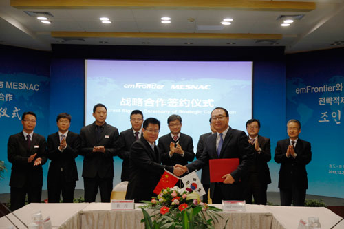 12月20日,軟控股份與韓泰集團(tuán)旗下emFrontier公司在青島簽署戰(zhàn)略合作協(xié)議,雙方將在IT解決方案、工廠自動化、物流自動化三個(gè)領(lǐng)域內(nèi)展開深度合作,在全球范圍內(nèi)共同開發(fā)市場。