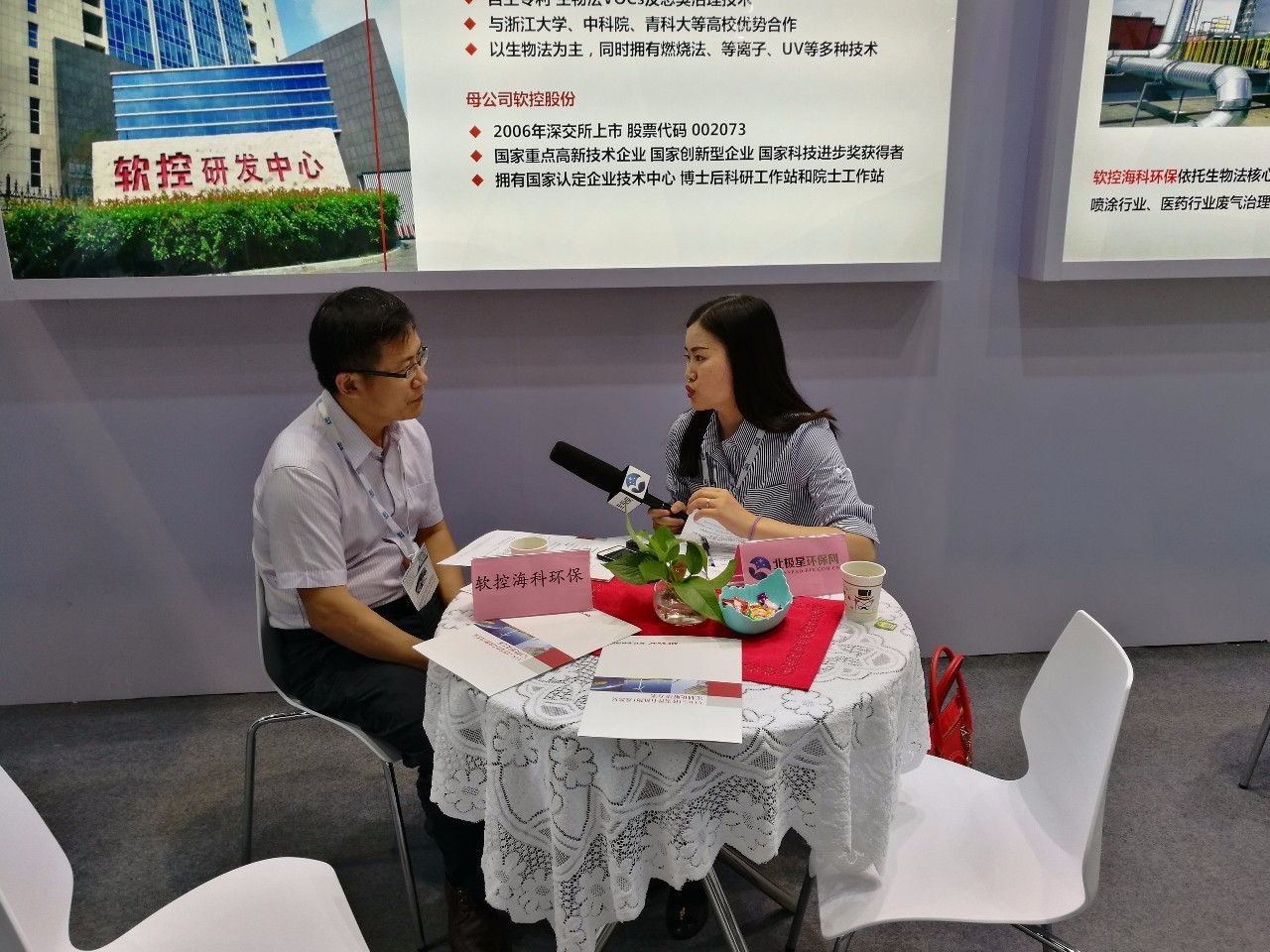 上海電視臺紀(jì)實(shí)頻道親臨展臺采訪,軟控與億萬觀眾分享如何看待當(dāng)前有機(jī)廢氣治理形勢。