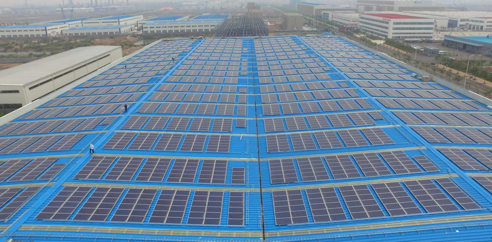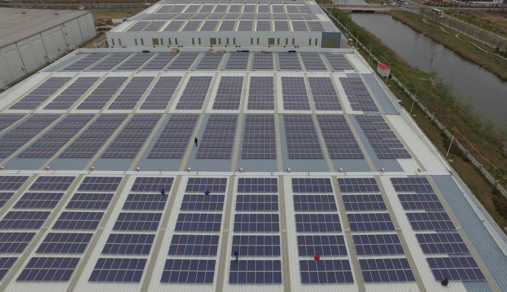 借此機會,青島華控能源牽手青島高新區(qū)內(nèi)的科捷機器人和佳友機械廠,在其房屋頂建設(shè)了光伏發(fā)電項目作為試點。一塊塊一人多高的矩形太陽能板均勻的排列在廠房屋頂,十分規(guī)整,科技感十足,這就是光伏發(fā)電裝置。太陽能板平鋪在廠房屋頂既節(jié)約了空間,同時也可以讓太陽能板充分接受陽光照射。