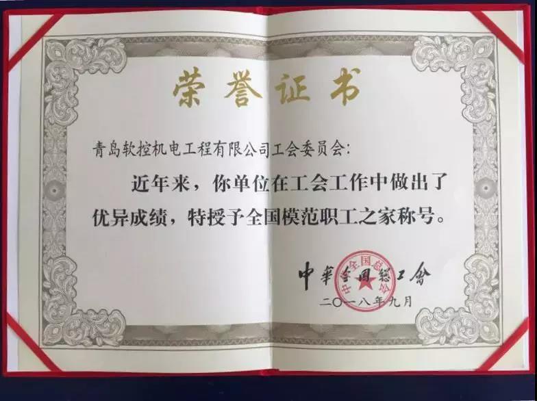 近日,中華全國總工會下發(fā)了《關(guān)于表彰“全國模范職工之家”的決定》,軟控機電工會榮獲“全國模范職工之家”榮譽。