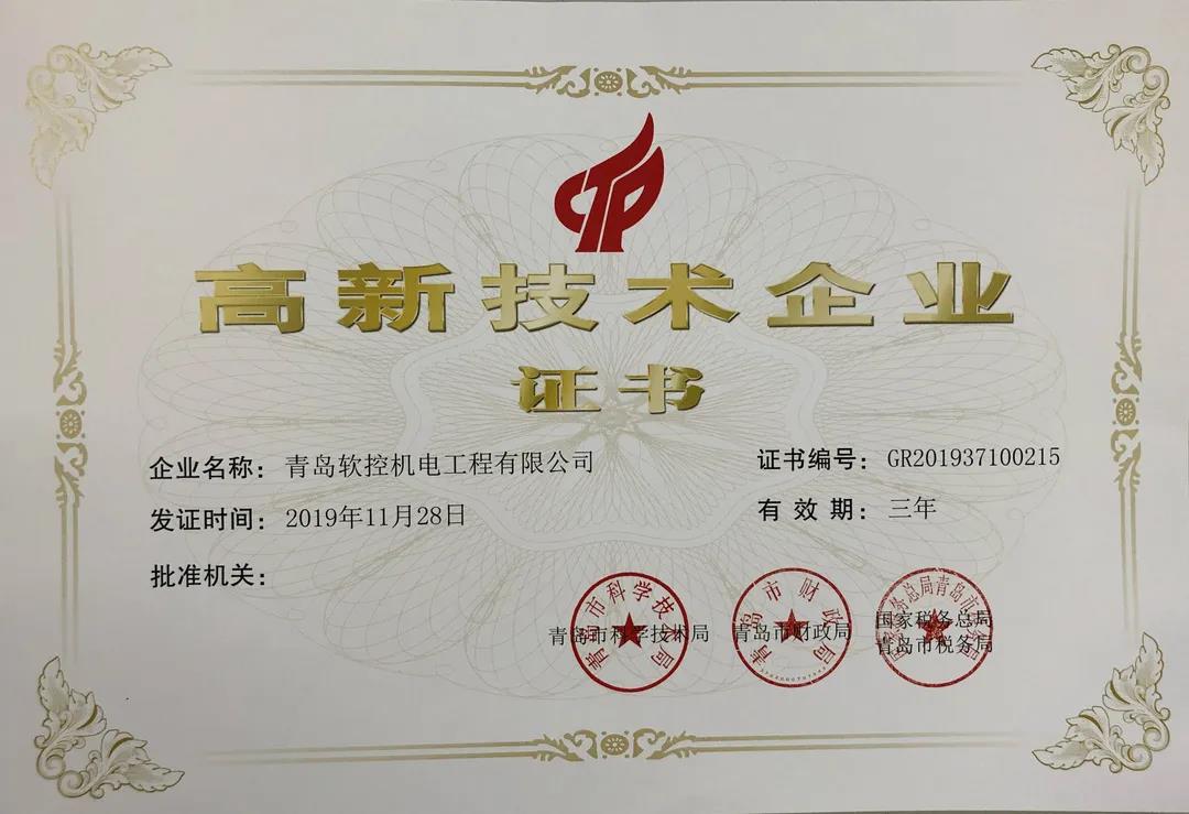 近日,青島軟控機(jī)電工程有限公司榮獲青島市科學(xué)技術(shù)局、青島市財(cái)政局、國(guó)家稅務(wù)總局青島市稅務(wù)局聯(lián)合下發(fā)的《高新技術(shù)企業(yè)證書(shū)》,這是繼2016年初次獲評(píng)后,軟控再次獲此殊榮。