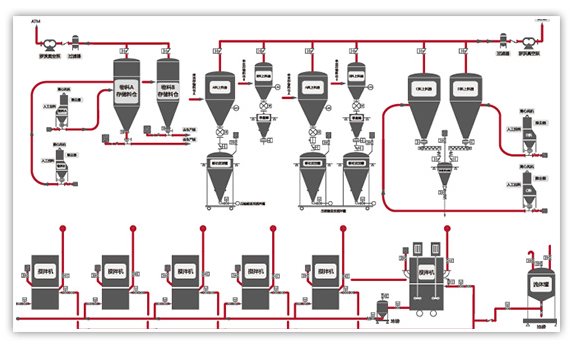 原料輸送:可實現(xiàn)大批量、遠(yuǎn)距離、高效率輸送;快速準(zhǔn)確的取料并輸送到指定位置;管道封閉輸送有效避免污染。